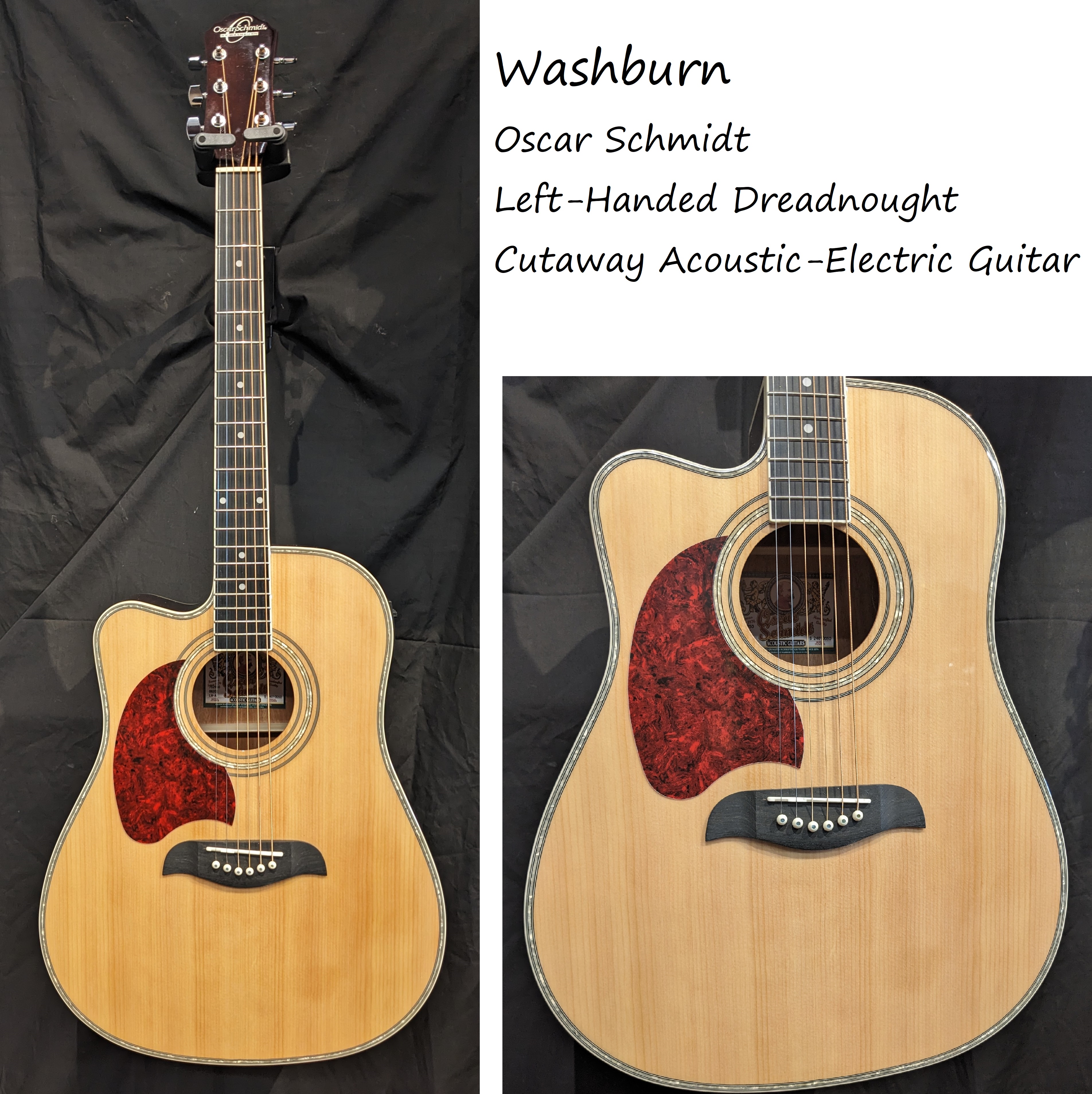 Washburn Oscar Schmidt Left-Handed Dreadnought Cutaway Acoustic-Electric Guitar